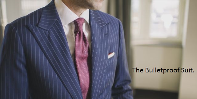 The Garrison Bespoke design team worked alongside the US 19th Special Forces to develop this custom suit. This suit looks just like a typical suit- no one would ever know the difference! The bulletproof suit uses nanotechnology and is made from the exact same carbon nanotubes that were used in the US troops uniforms in Iraq. However, Garrison Bespoke prides itself on the fact that the fabric, although bulletproof, has been slightly altered as to feel more flexible and lightweight for maximum comfort AND safety.