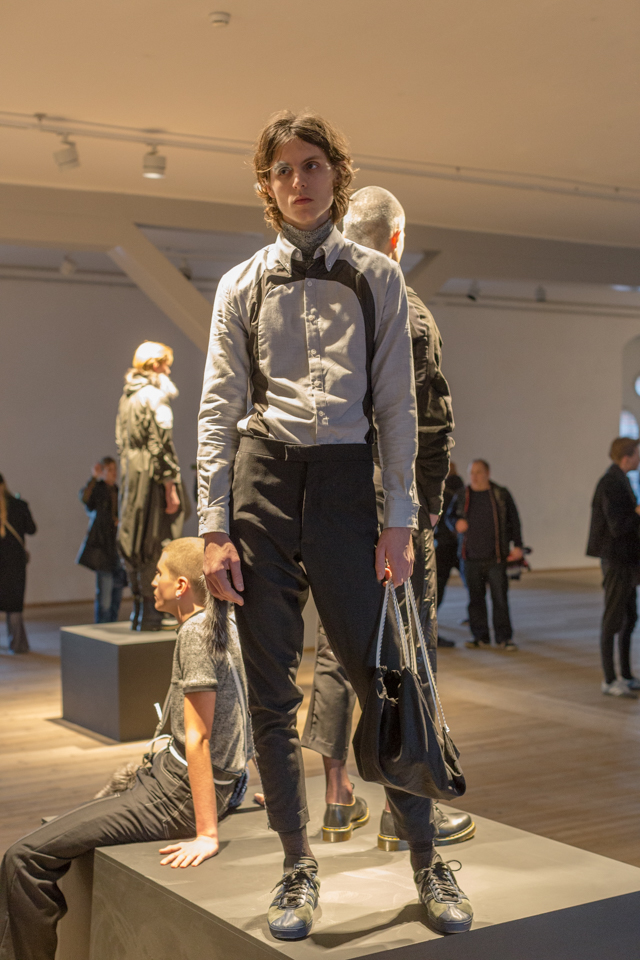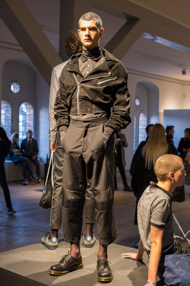 Asger Juel Larsen presented one of the more tailored collections at Copenhagen Fashion Week. However, it wasn’t by any means mainstream, as Larsen remains true to his more underground aesthetic. The collection was the perfect mix of wearable trends such as long coats with a fur collar and tailored separates, but also included some funkier styles like ripped jeans and flannel plaids layered with voluminous sweatshirts.