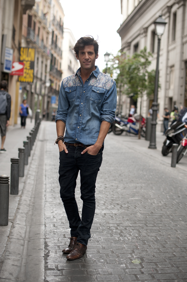Street Style: Madrid Madrid | Street Style | 02.10.2013 Tagged with: black • blue • bracelets • denim • gran via • Madrid • Pants • shirt • shoes • streetstyle
