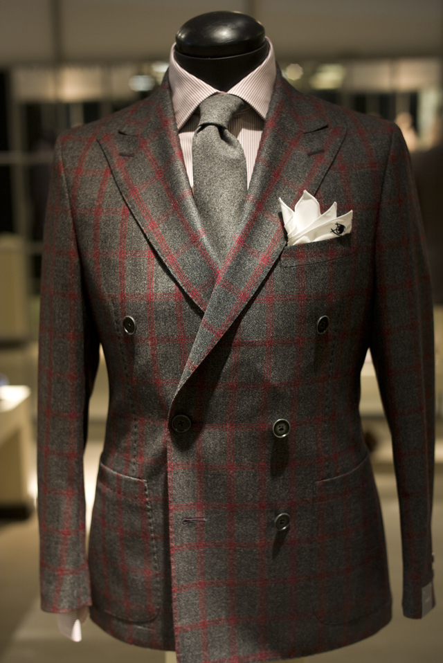 What strikes immediately when confronted with this fascinating collection of menswear in person is not only the old patterns and the old stitch, but very much so the old COLORS of faded browns, jaded greys, and gruesome blues, as if the art of coloring fabrics yet still needed to be invented at the time. On such old retro tweeds indeed a small white pochette makes an incredible difference and any accessory you may care to carry or wear is going to stand out to the point that it WILL be noticed: Your tweed casket has a different pattern – it will be noticed; you leave your tie untied – it will be noticed; you have something in your pocket or in your hand – it will be noticed, because your suit is meant and designed not to make you stand out, but to blend and fade you back into the background, so that what comes out is your personal style, your movement, and the character of your face.