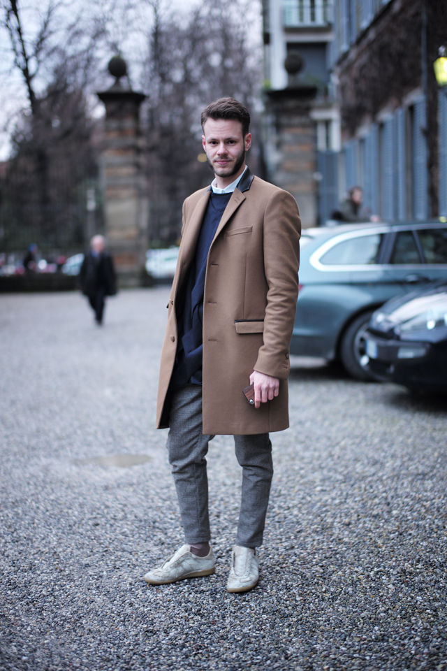 Street Style: Milan Milan | Street Style | 03.06.2014 Tagged with: beige • coat • fashion • Fashion Week • menswear • Milan • shoes • skinny pant • Street Style • style • trendy