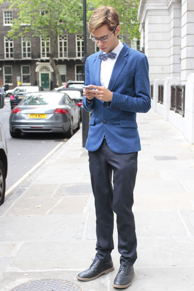 Street Style: London London | Street Style | 09.10.2014 Tagged with: blazer • blue • bowtie • fashion • London • menswear • Street Style • style