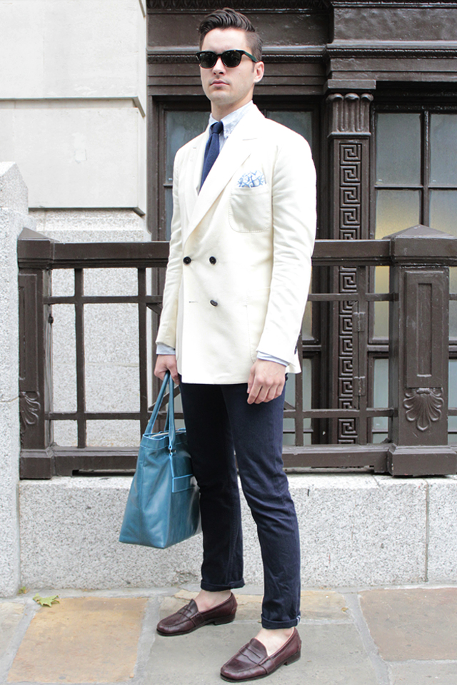 Street Style: London London | Street Style | 07.10.2014 Tagged with: blazer • fashion • London • menswear • Street Style • style • sunglasses • white