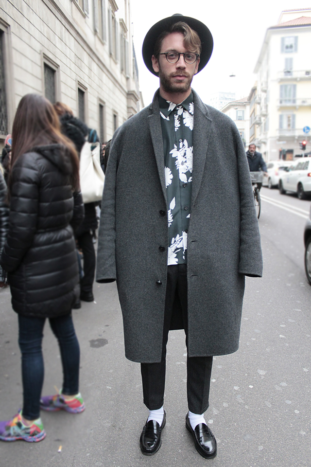 Street Style: Milan Milan | Street Style | 05.03.2015 Tagged with: coat • fashion • glasses • grey • hat • Italian • menswear • Street Style Milan • style