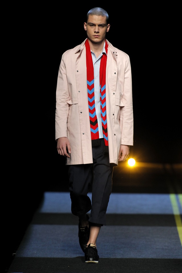 Long, lightweight trenches with cuffed trousers and bright scarves marked most of the menswear.