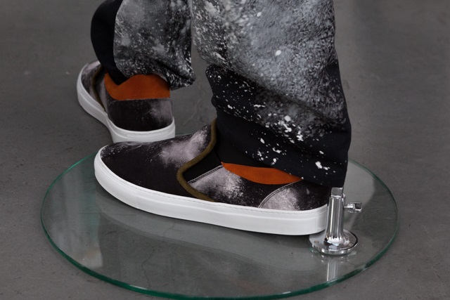 Now, there is a few things you really need to know about this show. One: it’s damn good! Two: the designer’s signature is highly recognizable and highly entertaining every time you see his work again (last time there was a close encounter of the third kind). And three: he loves blacks, dark coatings, jacquards, and special dark lacquers on leather (kurozan aka the black diamond of leather).