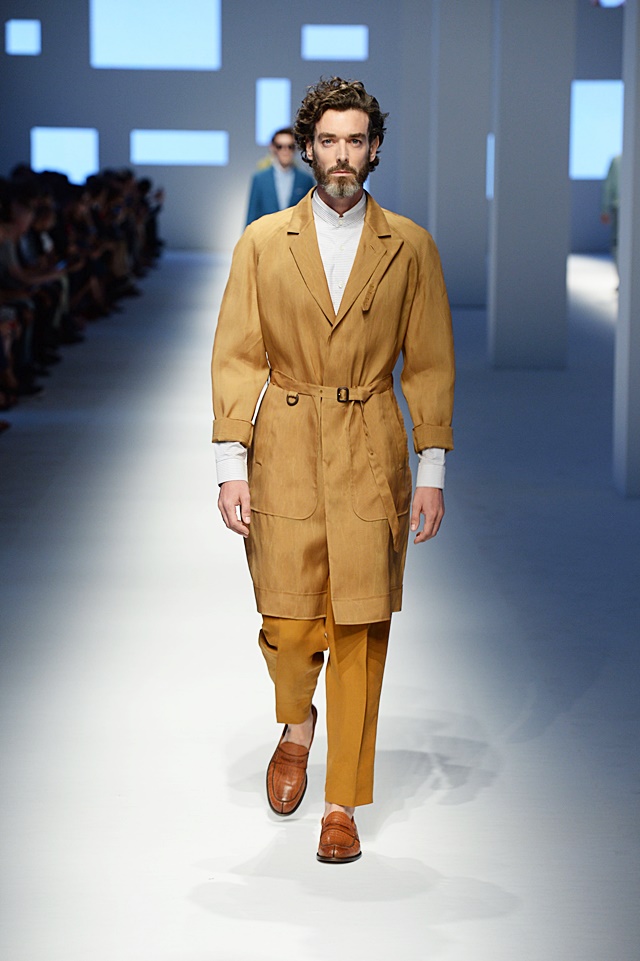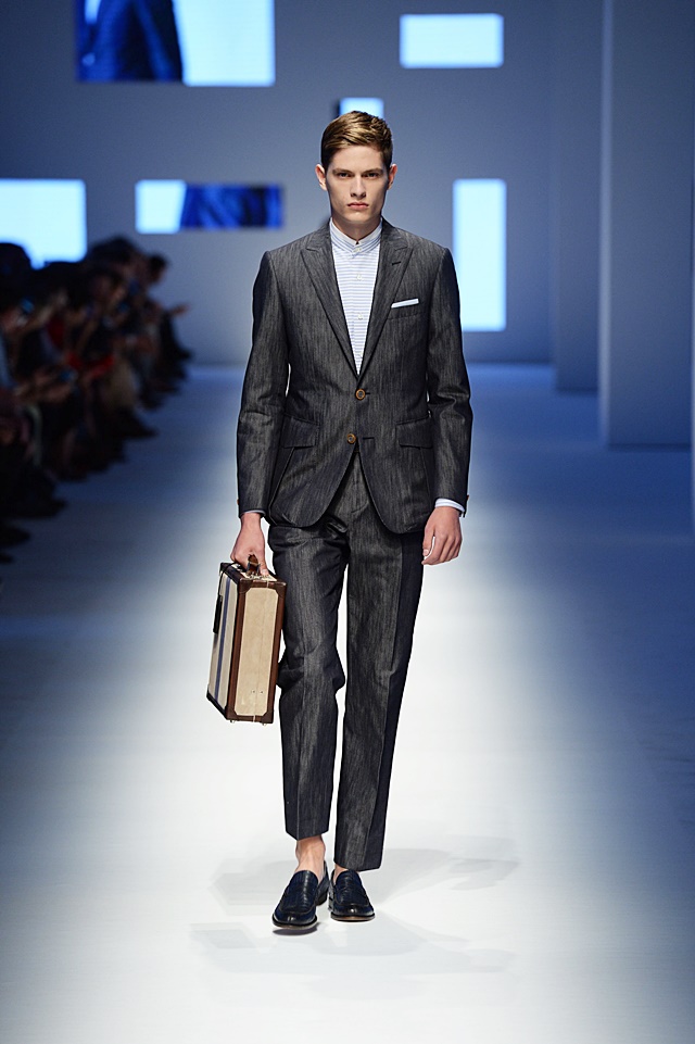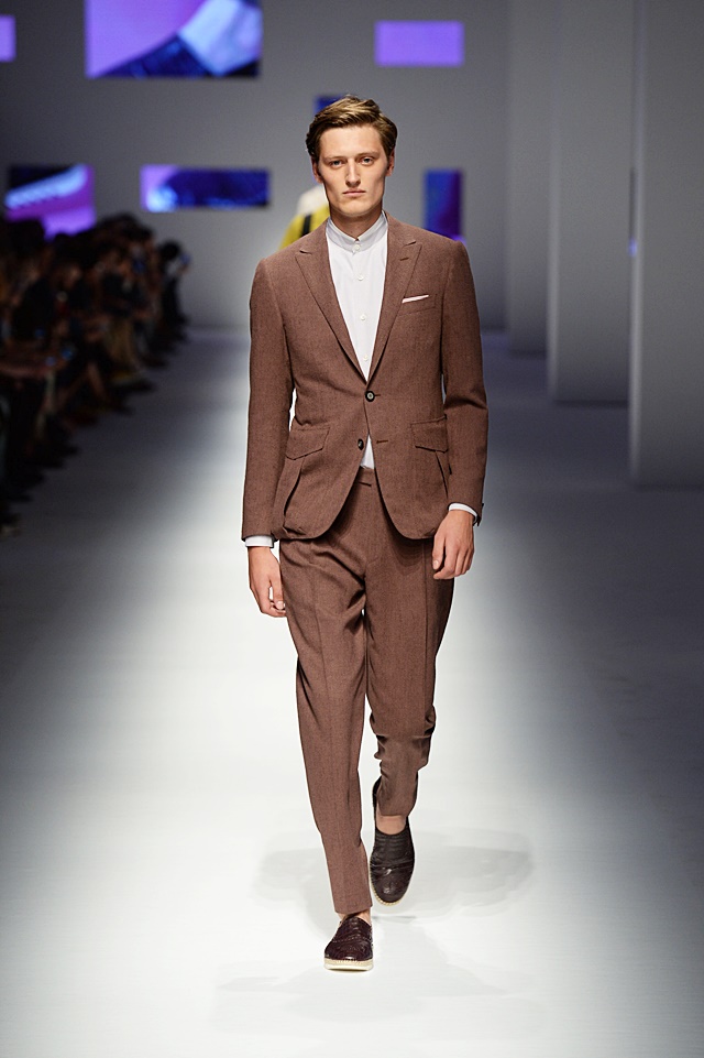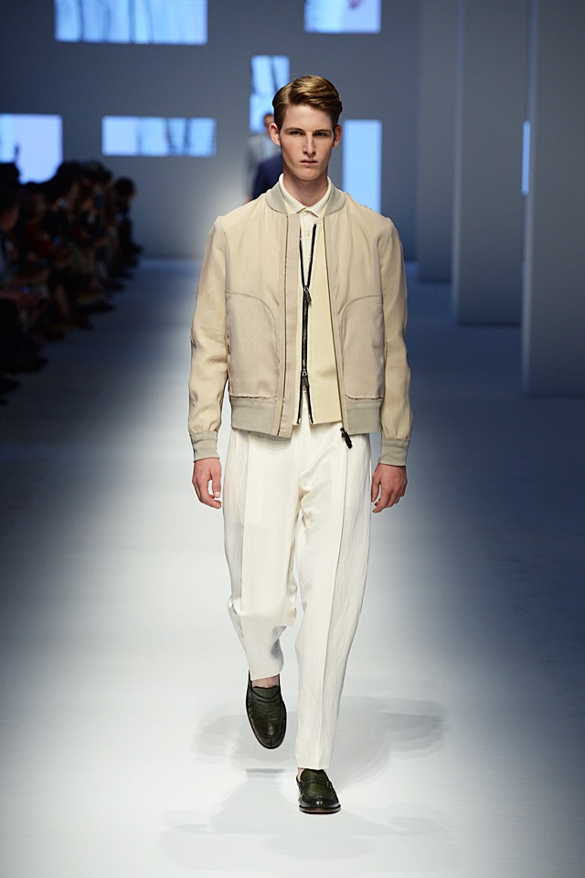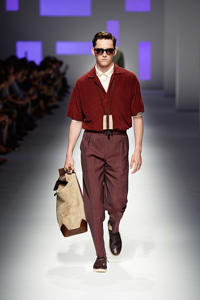 The baggy pant was officially brought back. Gone (or, at least in Ermanno’s mind) are the skinny pants, making way for a more relaxed look. Conversely, shorter, more tailored blazers and motorcycle leather jackets were more form-fitting to offset the wider pant leg. Interesting color choices and patterns were put together, like a pale pink with army green, stripes with baby blue leather or houndstooth with camoflauge…and surprisingly, it really worked.