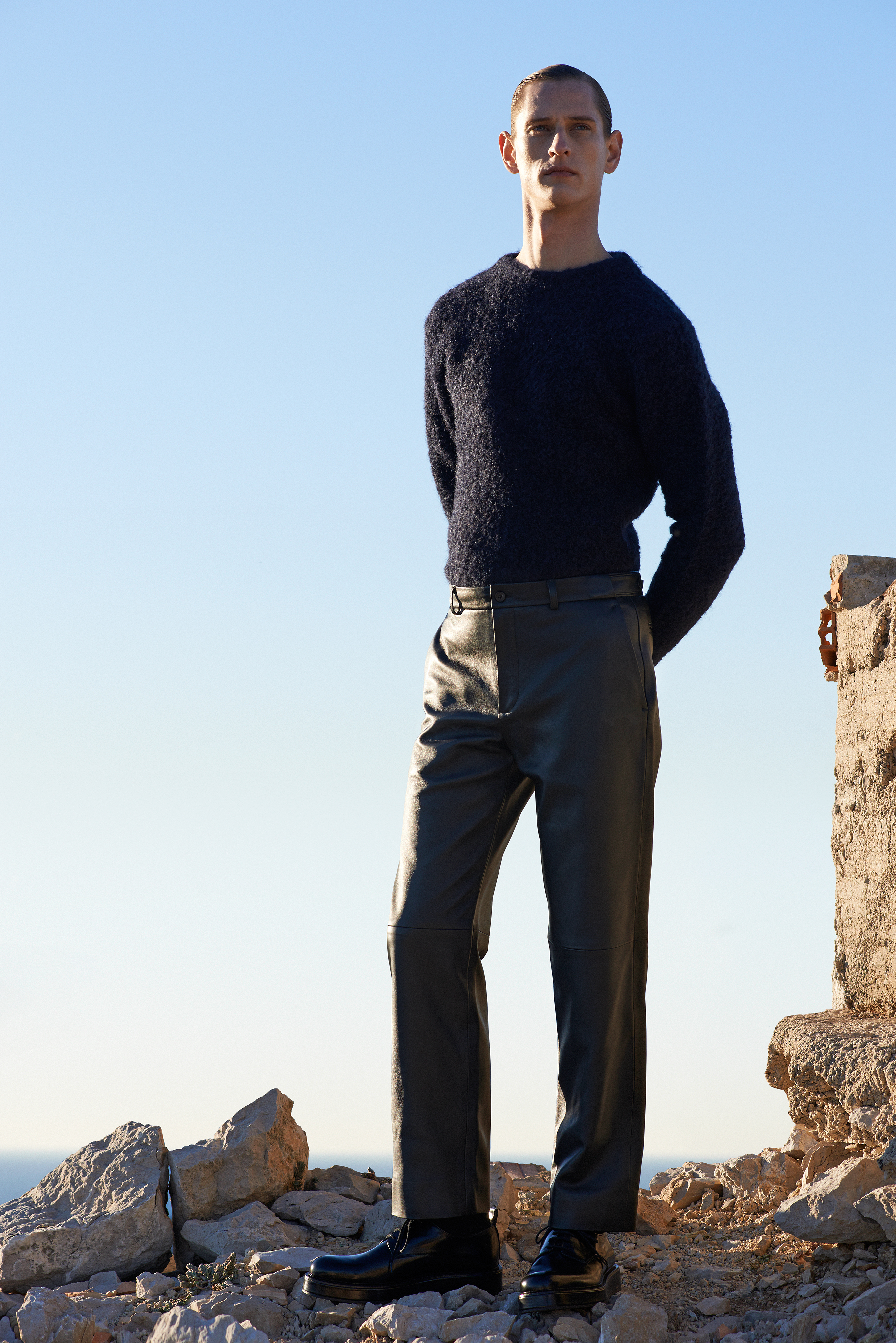 As the show’s theme of Riddick-lacquered humanoids lead by (grey) aliens slowly paraded through the dark in front of us we realized that the press release had not been kidding: This show was supposed to be about SPACE (sic), BLACK HOLES (surely felt like we had arrived in one), and boundless ENERGY, captured in the show’s hallmark item – the famous theorem by Albert Einstein: E = mc square. Perhaps that this explains why there were TWO aliens in squared and checkered outfits, and not just one. But perhaps not. And perhaps that this close encounter on a humid Paris Sunday in winter was really never meant to be and that somehow we had found ourselves in a quantum time lapse. Frankly, everything looked a little bit unreal, and not just grainy. Not surreal, as is usual in Paris. But unreal. Two Aliens in cashmere outfits that looked like they could have been made in Italy by Cantarelli. A host of lacquered humanoids in style as omen forbidding & foreboding, like something out of the Chronicles of Riddick which appears right after the two suns have set (you know the drill). Dark space in the backstage mirrors. Radiation goggles not optional.
