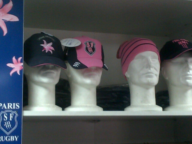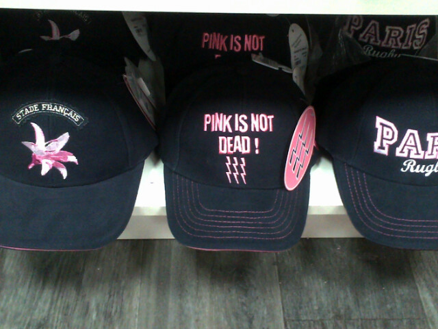 Thus visiting the Stade Français boutique at the stadium to do research for this article, the thought dawned that perhaps here was the only Pink Men’s Wear Store in the world. All items imaginable (lanyards, flags, hats, scarfs, shirts, underwear, socks etc. and then some) at the store were available in different hues and shades of pink, generally ranging between the color of fuchsia and soft pink, but with the flash pink missing for this season.